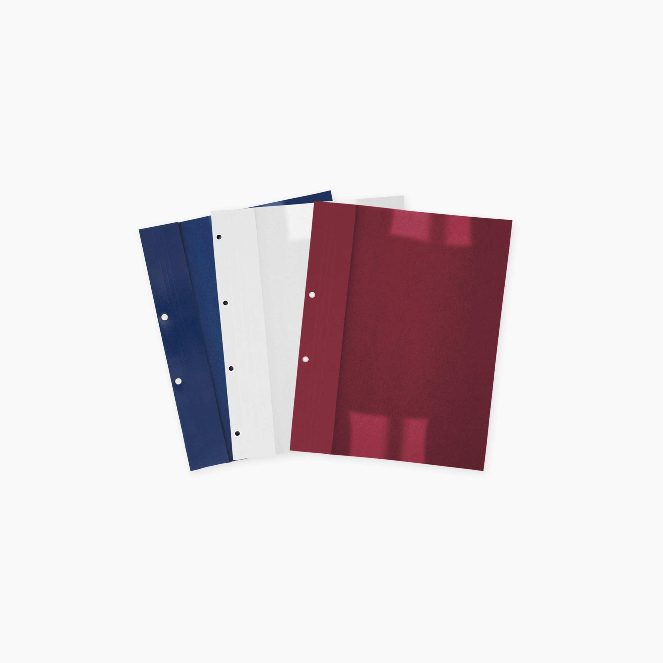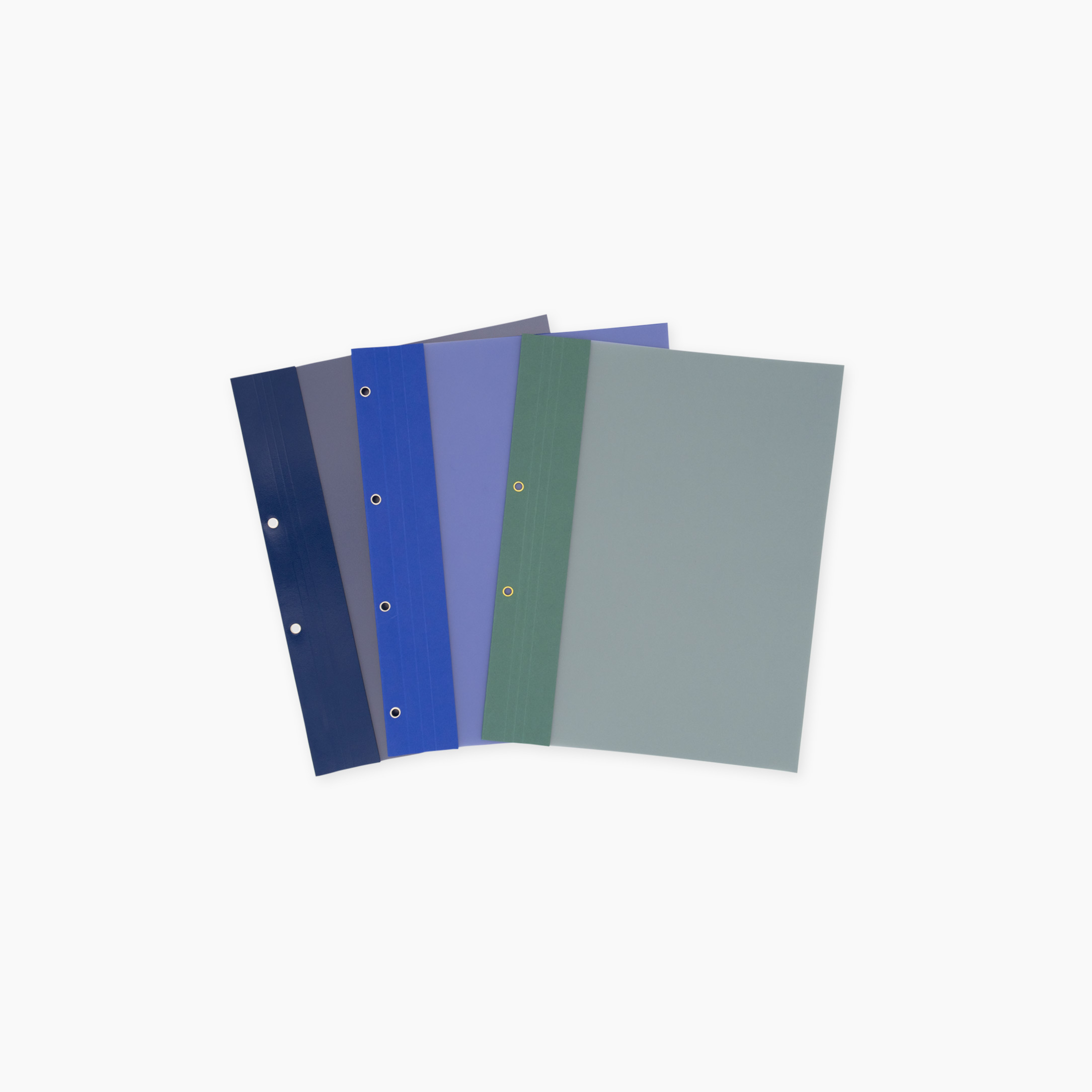 Vertragsmappe (Abheftvorrichtung innen, 2/4-fach Ösen aussen) mitVorderseite (transparent mattiert) und Rückseite (Karton).