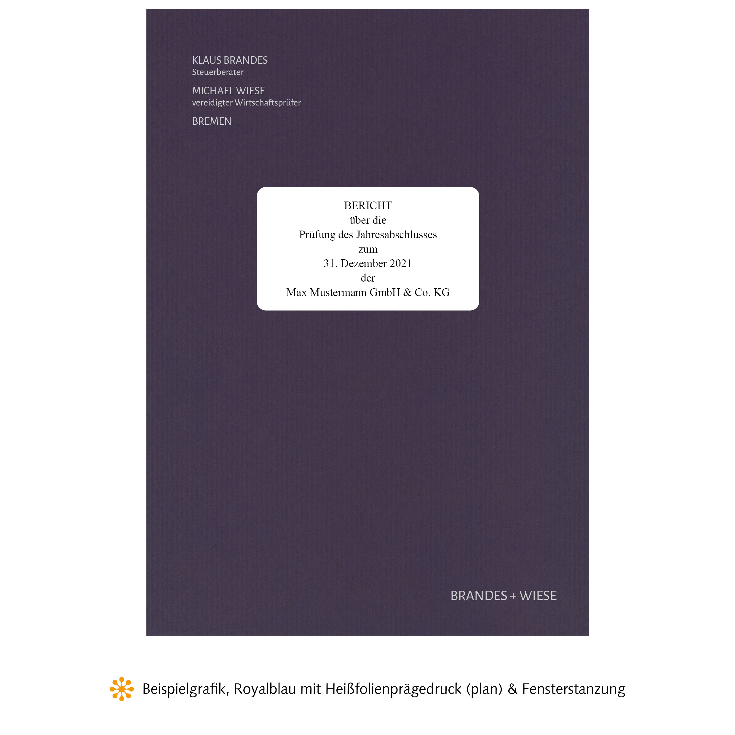 Produktinformationen "Berichtsmappe, mit Druck & Fenster-Stanzung, Vollkarton in Leinen, Bordeaux, Eisen-vernickelt, innen 8-fach geöst"