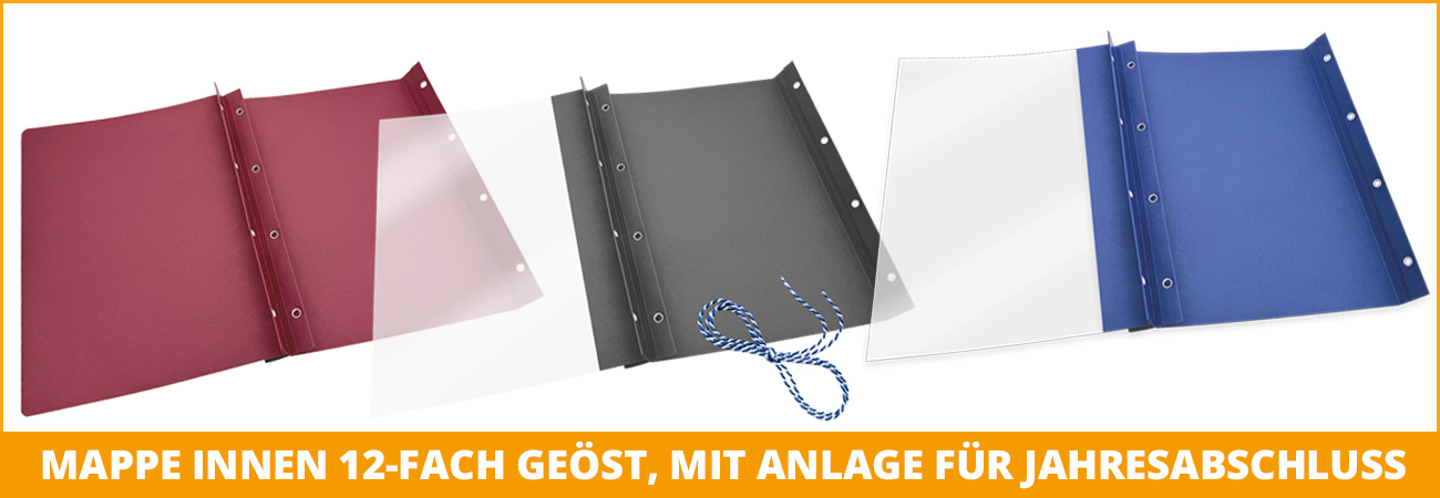 - Mappe innen 12-fach geöst, mit Anlage für Jahresabschluss