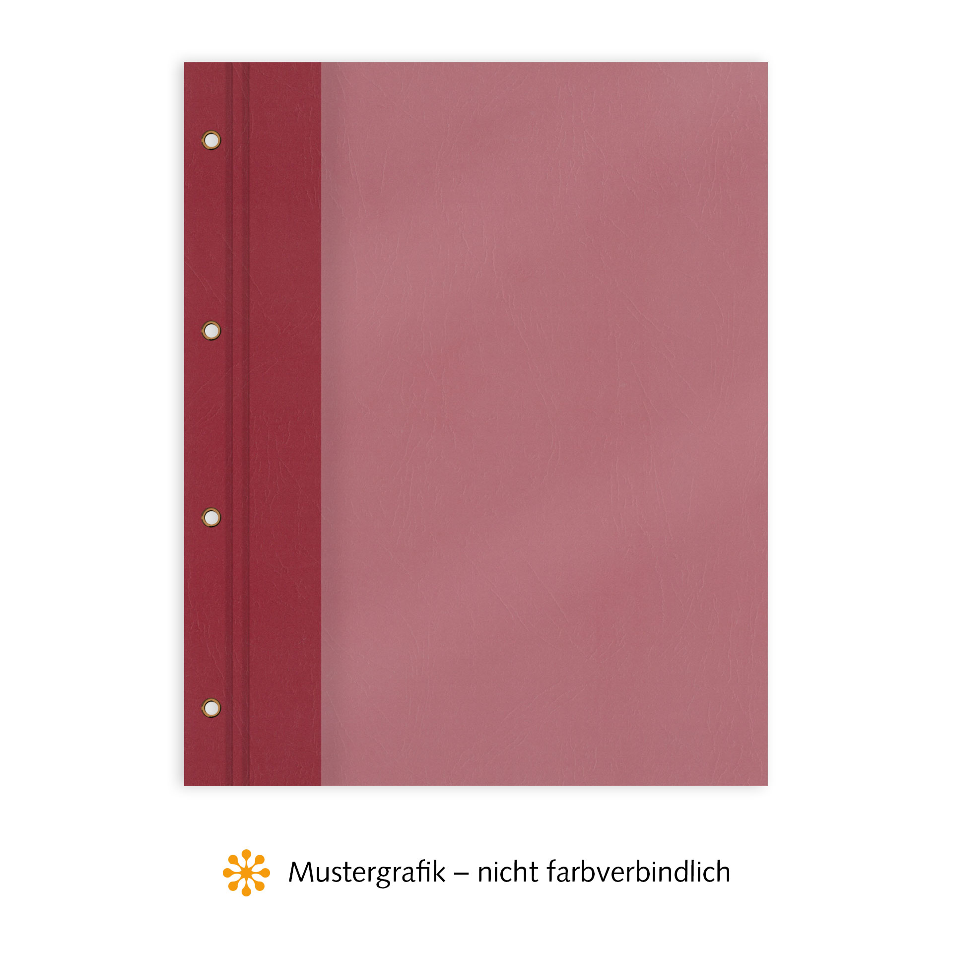 Produktinformationen "Bilanz- & Bindemappen B2, Vorderseite Folie MATT transparent, Rückseite Karton Leder, Rot, innen 8-fach geöst, außen 4-fach geöst, Ösen Eisen vermessingt"