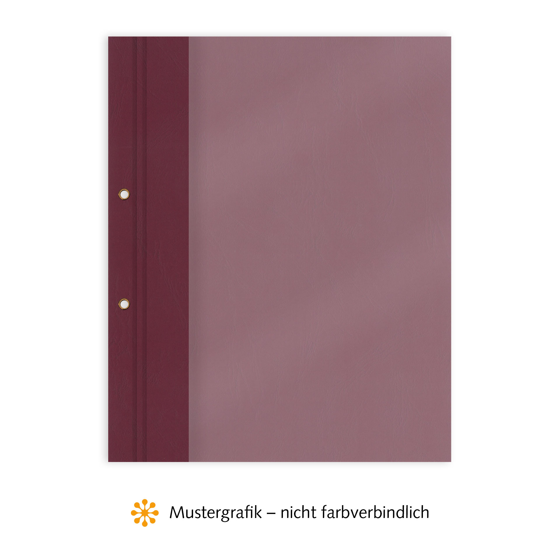 Produktinformationen "Binde- & Vertragsmappen, Vorderseite Folie MATT transparent, Rückseite Karton Leder, Bordeaux, innen mit Abheftvorrichtung, außen 2-fach geöst, Ösen Eisen vermessingt"