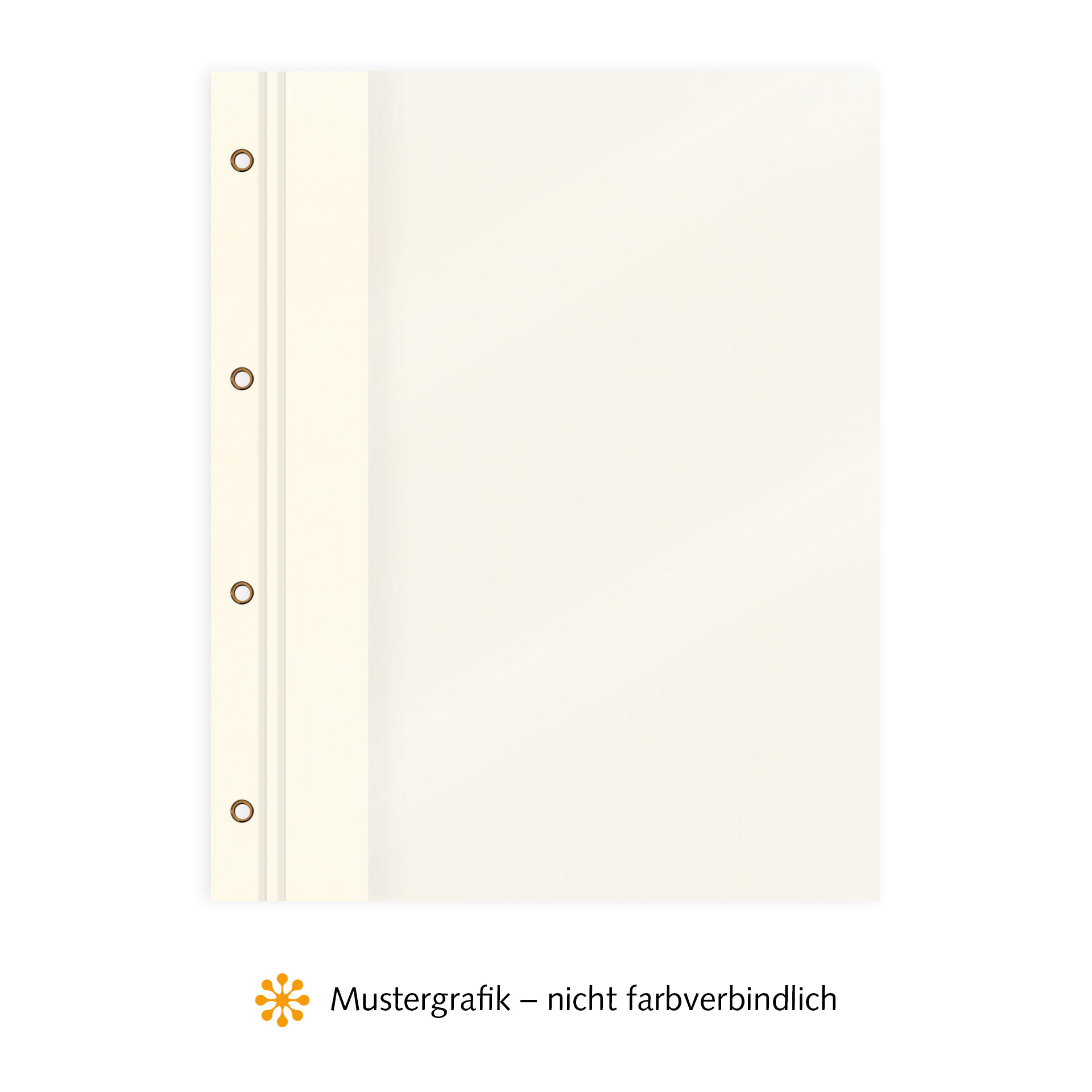 Produktinformationen "Binde- & Vertragsmappen, Vorderseite Folie MATT transparent, Rückseite Karton Leinen, Creme / Perlweiß, innen mit Abheftvorrichtung, außen 4-fach geöst, Ösen Eisen vermessingt"