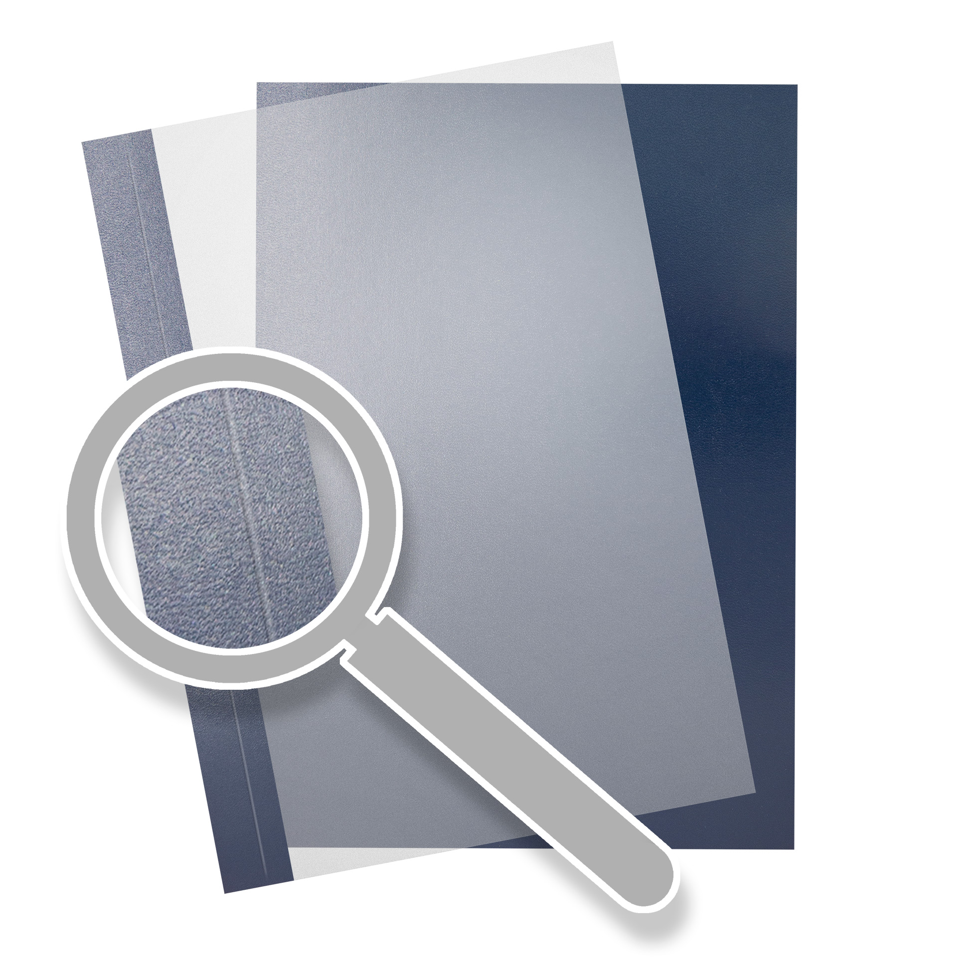 Produktinformationen "Bindefolien MATT transparent mit Randstreifen | SureBind / Velobind Cover | Business / Noblesse Regenzy - Dunkelblau mit Rückendeckel"