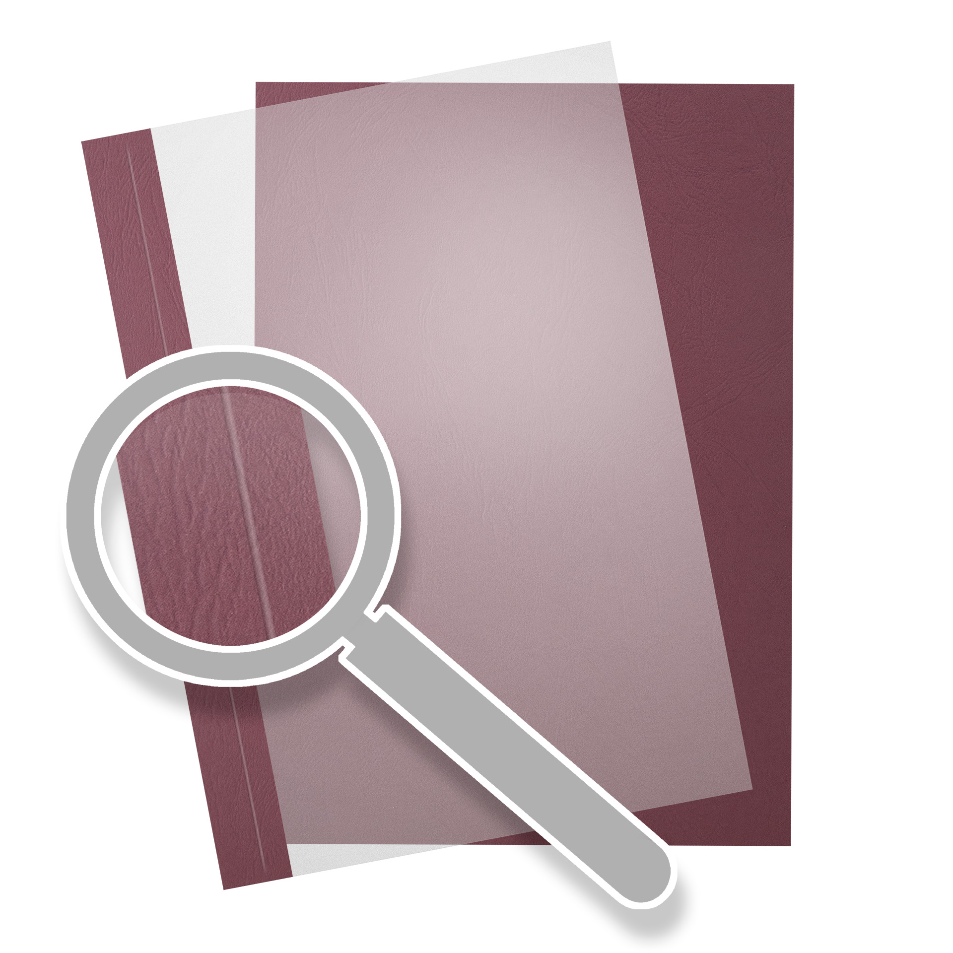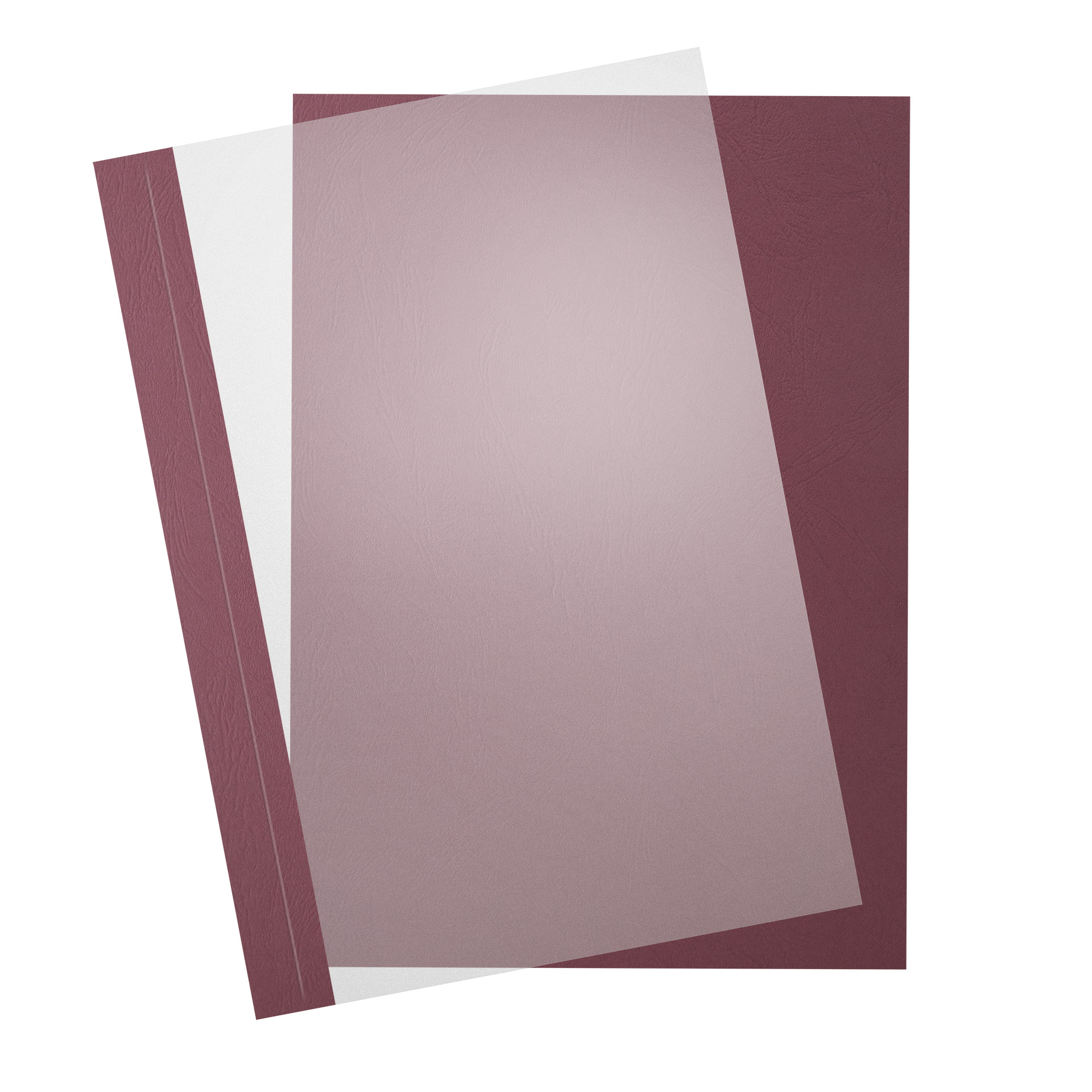 Produktinformationen "Bindefolien MATT transparent mit Randstreifen | SureBind / Velobind Cover | Leder - Bordeaux mit Rückendeckel"