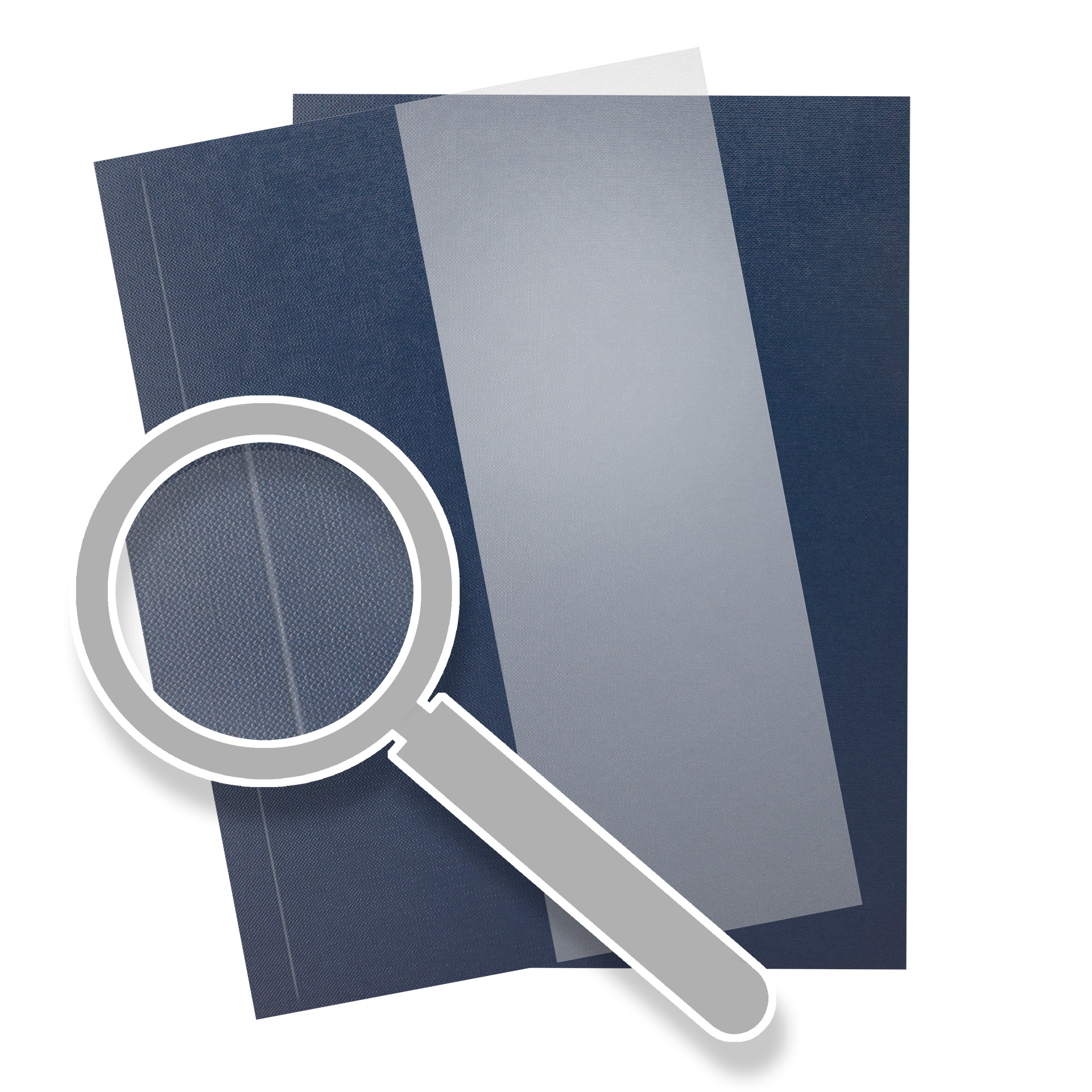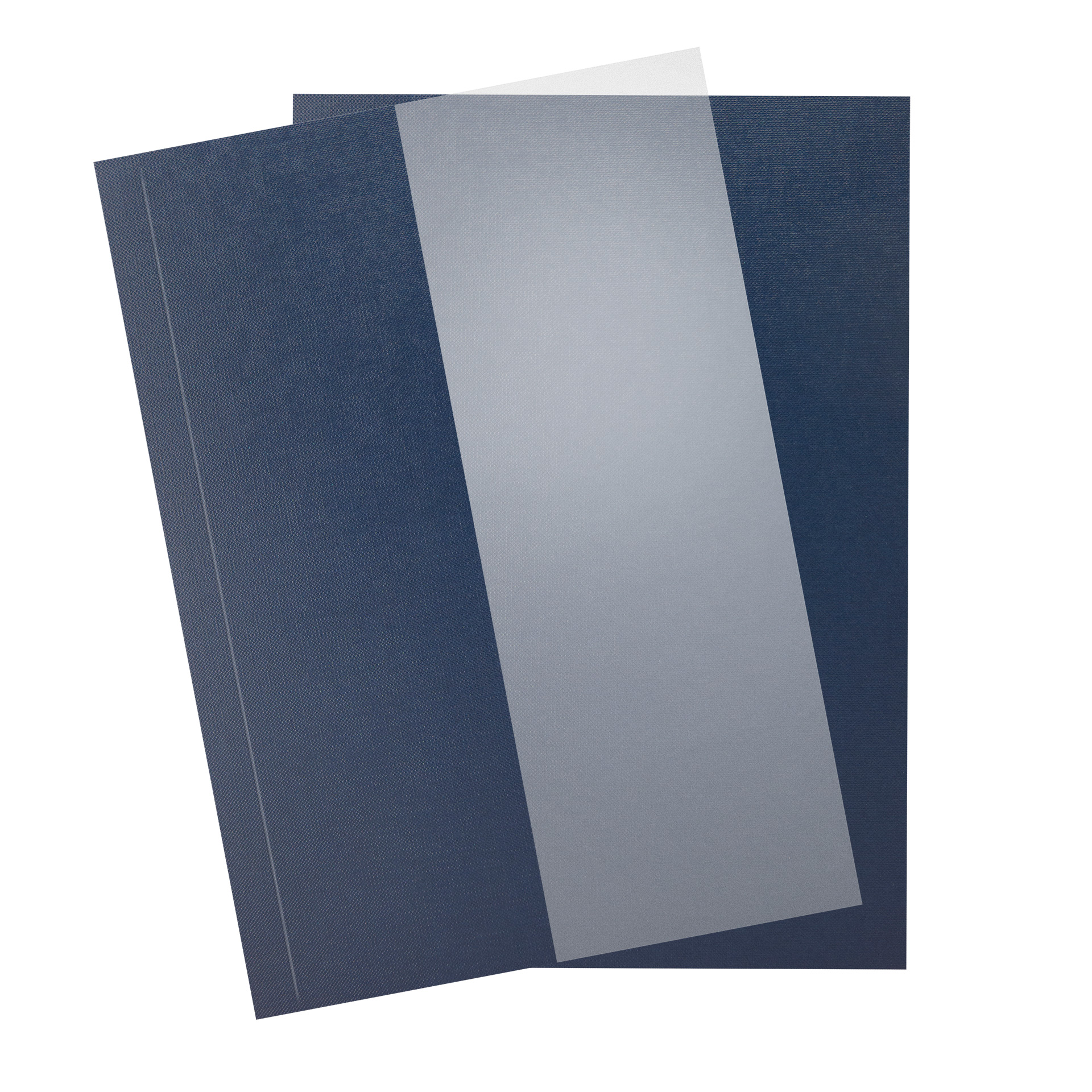 Produktinformationen "Einbanddeckel | Halb Karton - Halb Folie MATTIERT | Prestige GBC - dunkelblau, mit Rückendeckel, Rillung: 15mm"