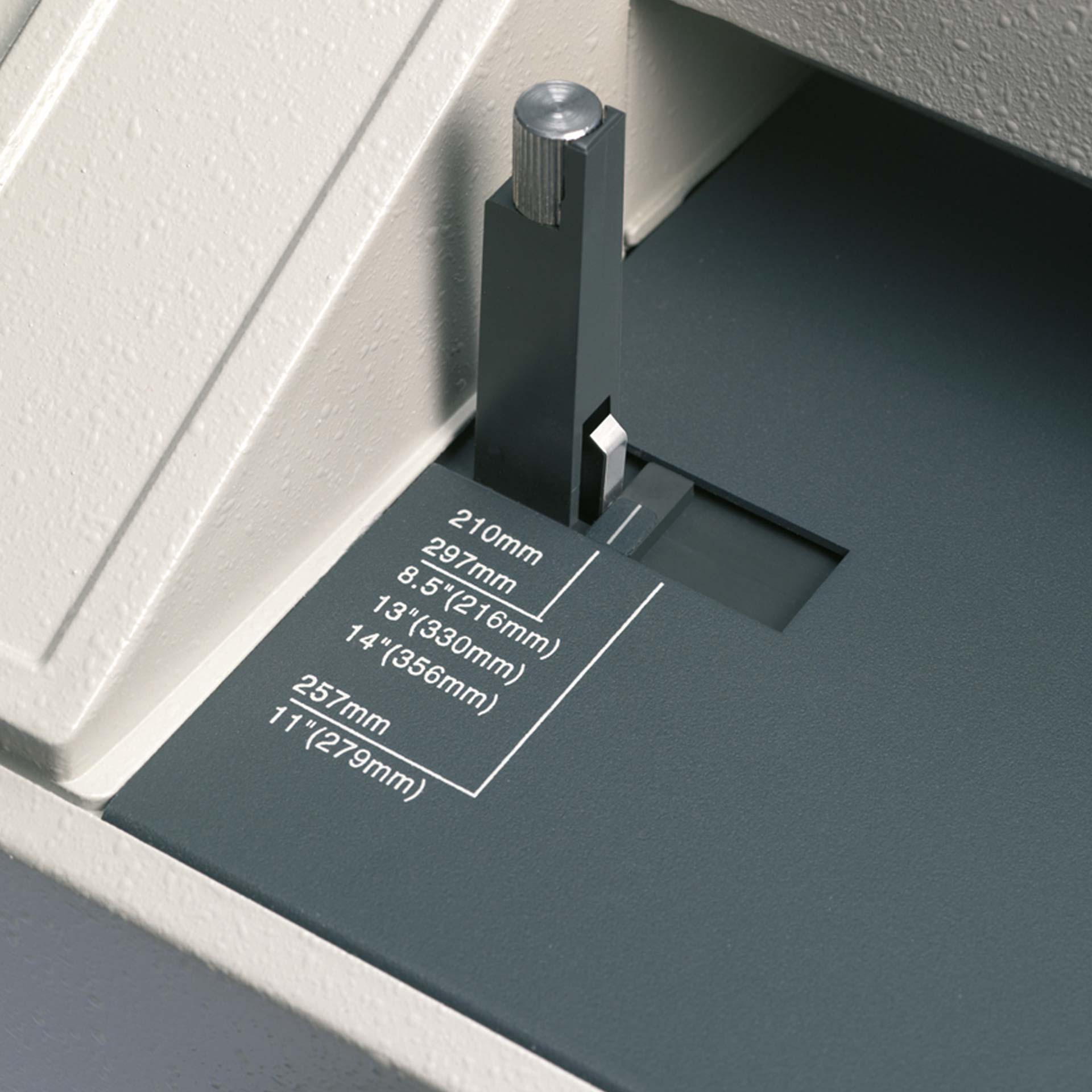 - Einstellbare Kantenführung: Ermöglicht eine perfekte Ausrichtung entlang der Papierlänge