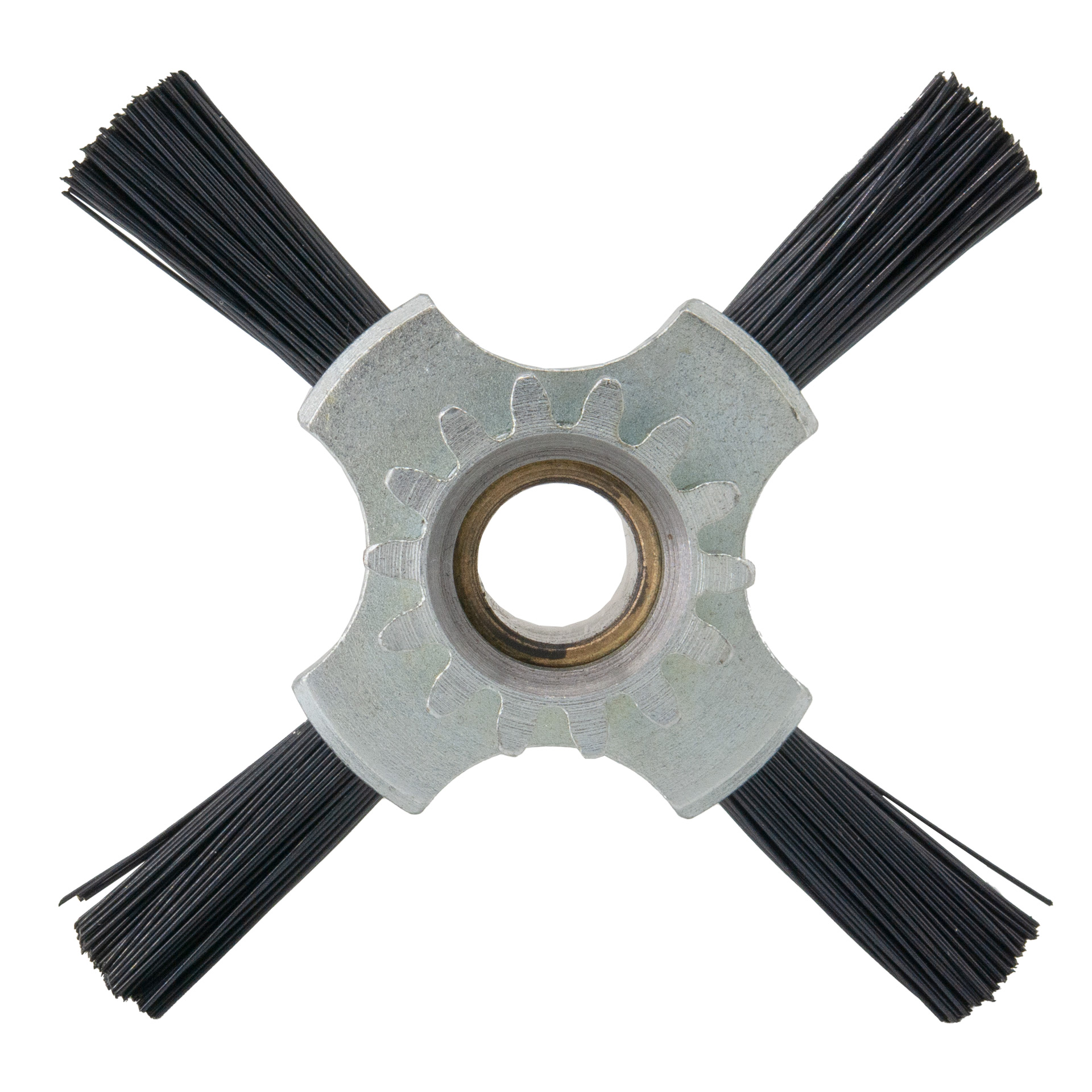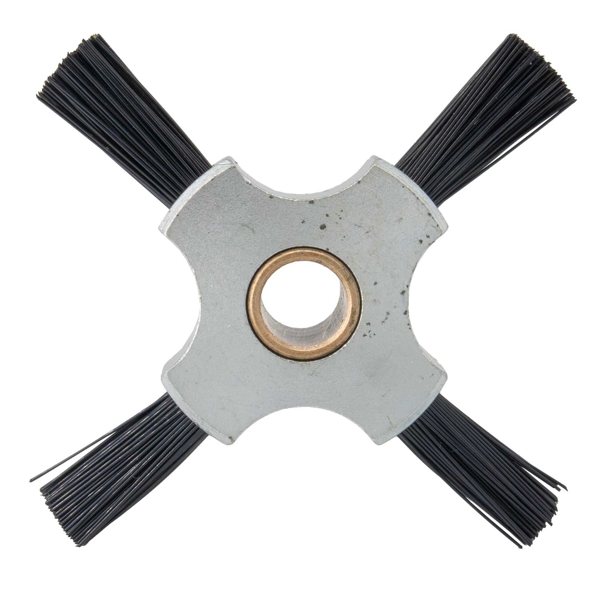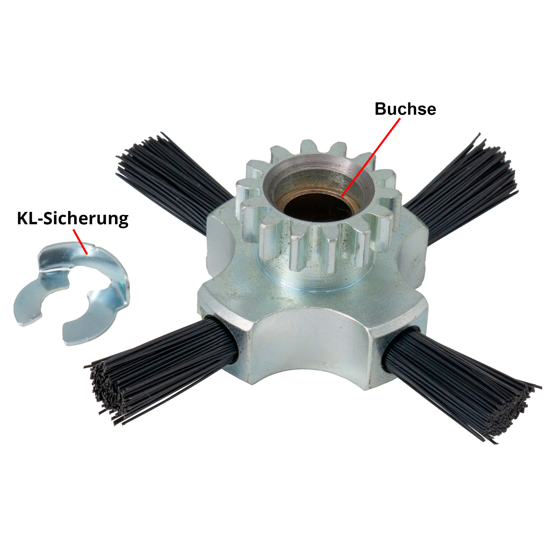 HANG Borstenscheibe mit vier Borsten-Einheiten (Borstenspule, Bürstenspule), ist ein Ersatz-, Reparatur- und Zubehörteil für die HANG 102 Serie (neueres Modell) mit größeren Ösen. Die Borstenscheibe hat eine Eingebaute Buchse und wird mit einer KL-Sicherung geliefert.