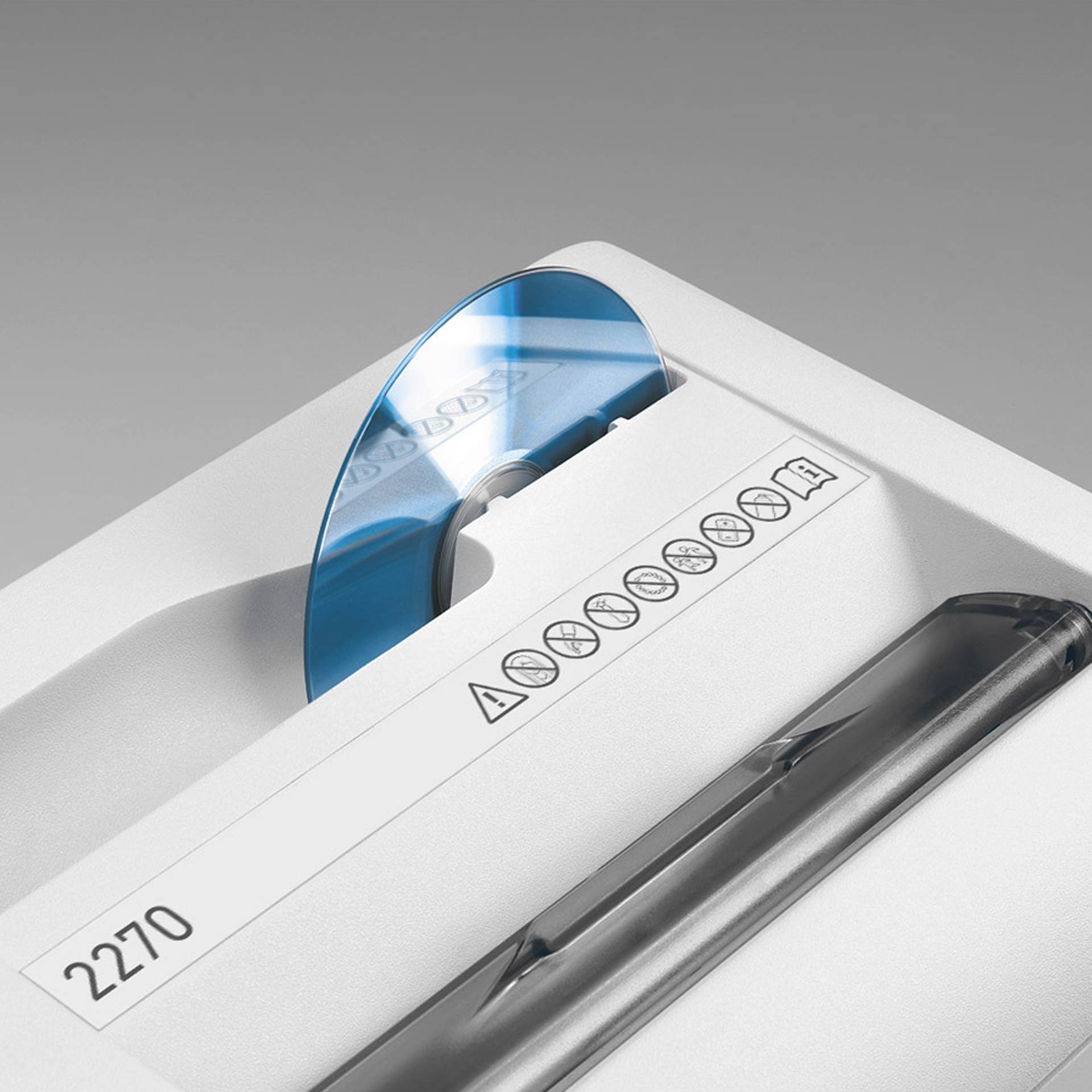 Leistungsstarker Aktenvernichter mit separaten Zuführöffnungen und getrennten Schneidwerken für Papier und CDs/DVDs. Eingriffschutz in der Zuführöffnung durch eine transparente Sicherheitsklappe als zusätzliches sicherheitselement. DIN A4-Arbeitsbreite (220 mm). Start/Stopp-Automatik über Lichtschranke. Mehrfunktionsschalter für Stand-by/stopp/rückwärts. Betriebsanzeige.