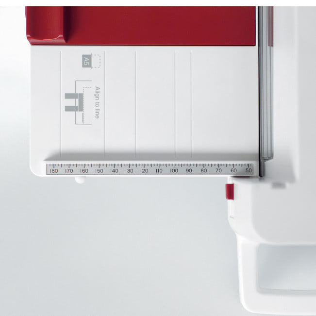 - Rückanschlag (DIN A5, B5, A4) für einfaches Schneiden von DIN-Formaten