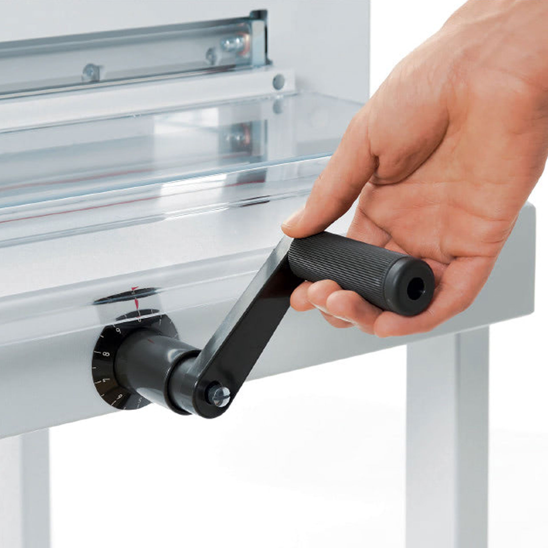 Manueller Büro-Stapelschneider für Formate bis DIN A3 mit 430 mm Schnittlänge und 40 mm Schnitthöhe.
