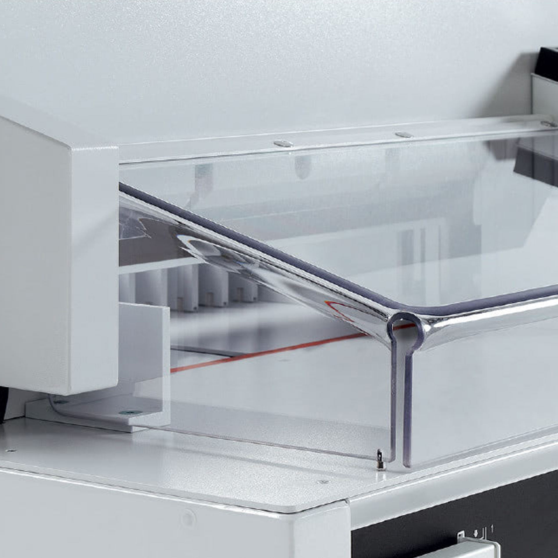 Elektrischer Stapelschneider mit EASY-CUT, automatischer Pressung sowie elektrischem Rückanschlag mit Touchpad und Programmsteuerung. 475 mm Schnittlänge.
