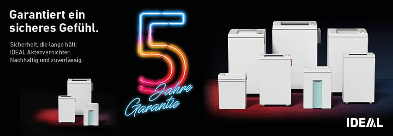 Komfortabler und leistungsstarker Schreibtisch-Aktenvernichter mit SSC - Smart Shred Control für staufreies Shreddern. Streifenschnitt nach Sicherheitsstufe P-2.Leistungsmerkmale wie IDEAL 2445, jedoch mit stärkerem 580-Watt-Wechselstrommotor. SPS-Sicherheitspaket (Safety Protection System): Patentierte, elektronisch kontrollierte Sicherheitsklappe in der Zuführöffnung als zusätzliches Sicherheitselement. Mehrfunktions-Schaltelement EASY-SWITCH mit integrierter Bedienerführung durch Farbsignale und Leuchtsymbole. Reversierautomatik mit automatischer Abschaltung, verhindert Papierstaus. Abschaltautomatik bei vollem Schnittgutbehälter. Elektronische Türsicherung über Magnetschalter. Zweifache Motorsicherung. ZERO ENERGY Standby-Modus: Komplette, automatische Netztrennung nach 15 Minuten Standby-Modus. Komfortable Arbeitsbreite von 240 mm. Lichtschranke für automatischen Start/Stopp. Mit SSC - Smart Shred Control: ein Smiley auf dem EASY-SWITCH-Schalter zeigt die aktuelle Kapazitätsauslastung während des Shredderns an. Büroklammernfeste Vollstahl-Messerwellen aus gehärtetem Spezialstahl mit LIFETIME-Garantie.Laufruhiger, kraftvoller 580W-Wechselstrommotor. Robustes, geschlossenes Getriebe. Hochwertiger, fahrbarer Holzunterschrank mit 50 l Volumen. Praktischer Schnittgutbehälter aus schlagfestem Kunststoff mit 35 l Behältervolumen (kann mit oder ohne Einwegsack verwendet werden). Schnittart Steifenschnitt Sicherheitsstufe P-2 Schnittbreite 4 mm Arbeitsbreite 240 mm Blattleistung 22-24 (70 g/m²) / 19-21 (80 g/m²) Gewicht 22 kg Größe (H x B x T) 635 x 395 x 291 mm