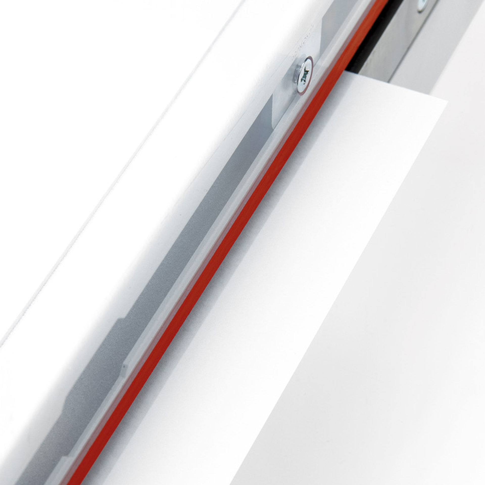 Großer Schneidetisch in stabiler Ganzmetall-Konstruktion. Nachschleifbare Messergarnitur aus Solinger Messerstahl. Stabiles Messerlager aus Aluminiumguss und zweifach gelagerte Messerachse für präzise Schnitte. Transparenter Messerschutz mit integriertem Schnittandeuter (zeigt auf der gesamten Schnittlänge gut sichtbar die Schnittline an). Präziser Seitenanschlag aus Metall mit stufenlosem arretierbarem Rückanschlag.