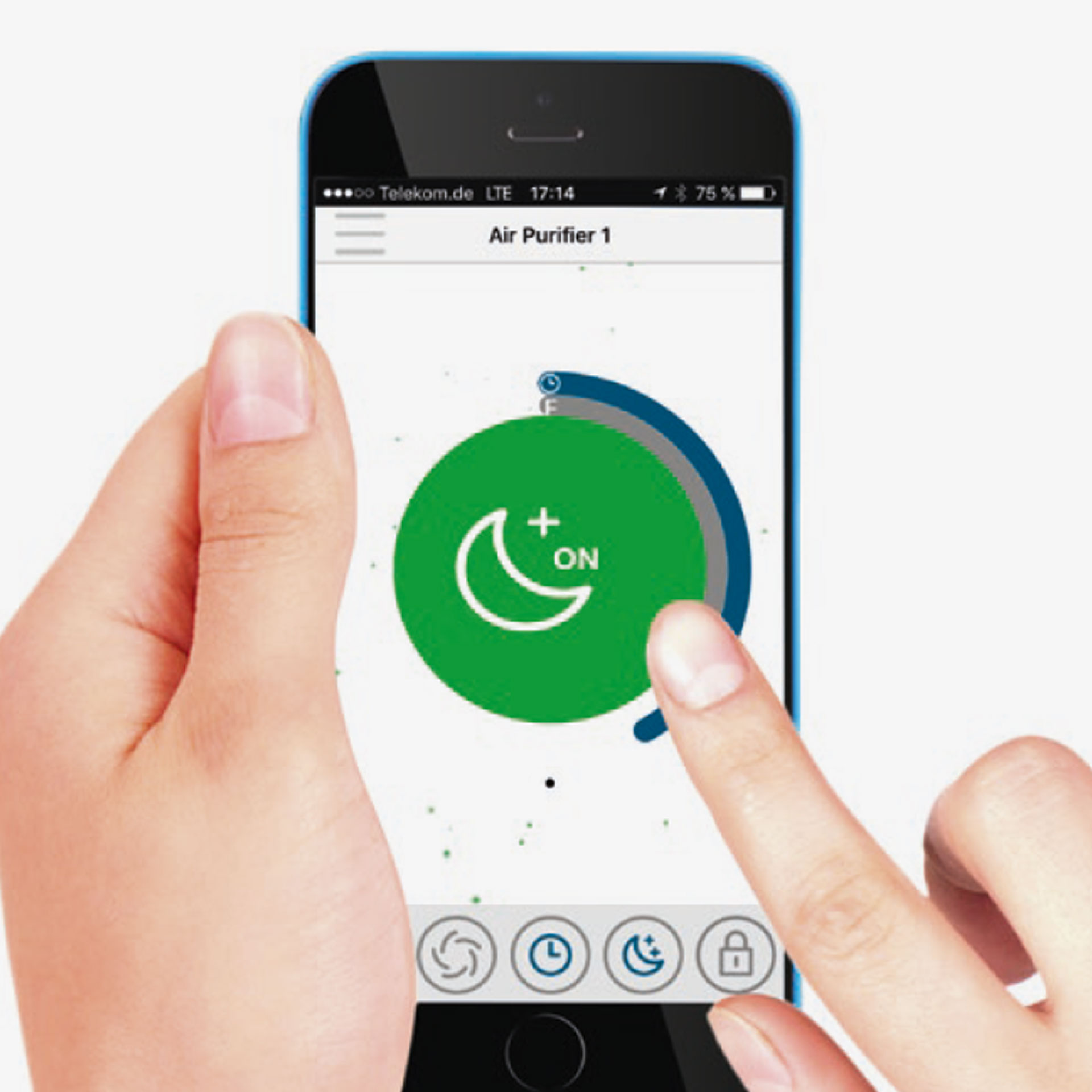 Geringe Laufgeräusche zeichnen die Geräte aus. Damit sind sie ideal für den gewerblichen Einsatz im Büro, Warteraum, Praxis, Agentur, Werkstatt sowie private Schlaf- und Kinderzimmer geeignet. Zur erweiterten Steuerung und Abfrage des Gerätes ist die App „IDEAL AIR PRO“ kostenlos bei Google Play und im Apple App Store erhältlich.