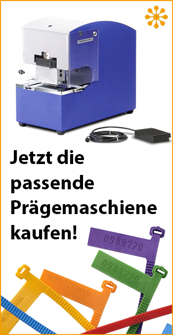Hier finden Sie bei Bedarf auch direkt die passende Maschine und weiteres Zubehör, um eigenständig sowie flexibel Kabelkennzeichnungen / Kabelschilder (für Kabelbinder) mit individuellen Buchstaben, Texten und Zahlen zu erstellen.