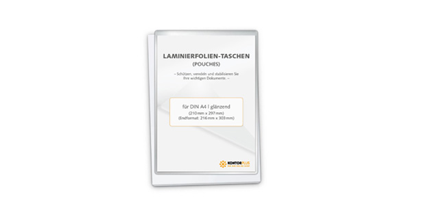 Laminierfolien DocumentPouch in A4. Mischung aus Polyester und Polyethylen für Heißlaminiergeräte. 200 Stück pro VE