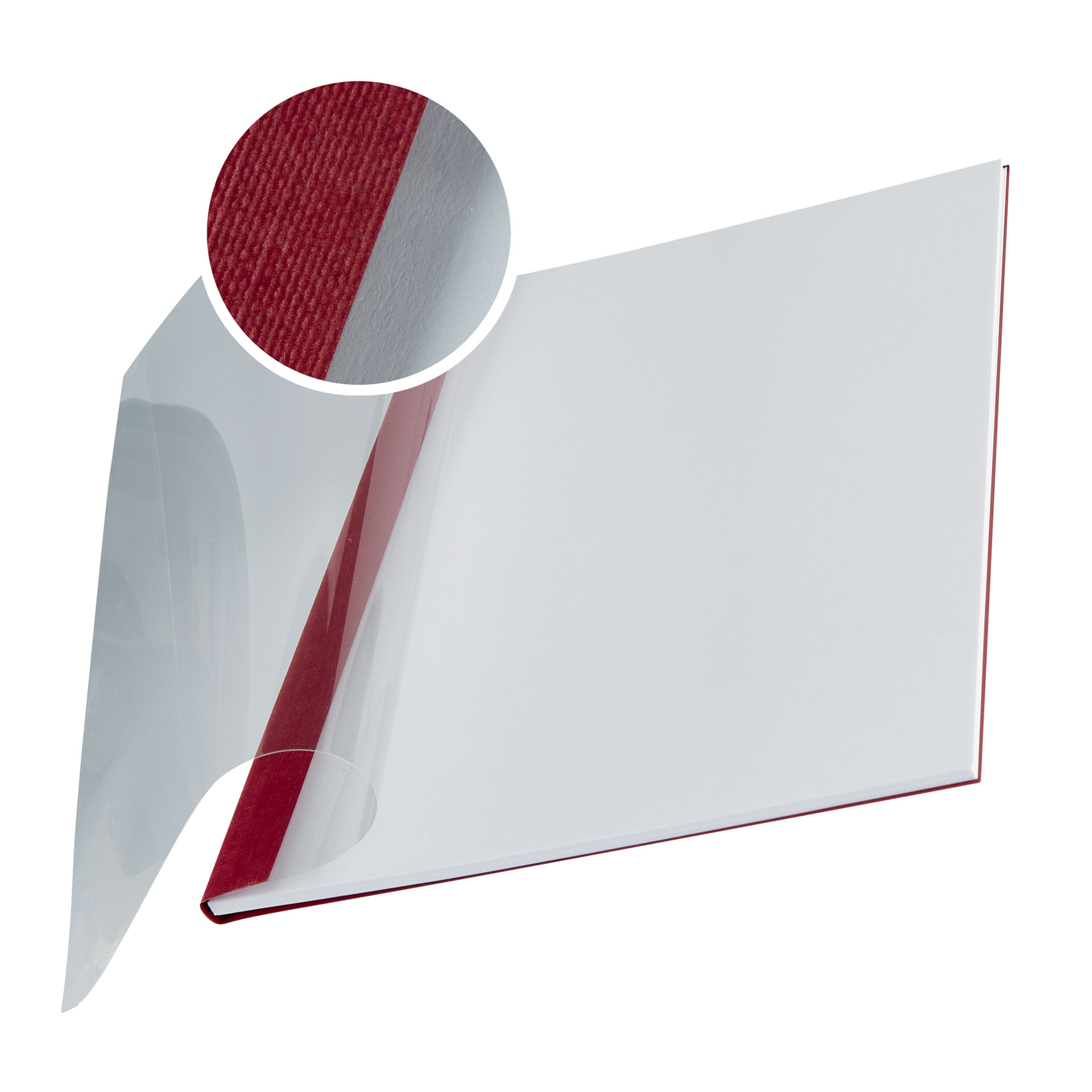 LEITZ Buchbindemappen Softcover ImpressBind, mit transparenter Vorderseite aus PET – ideal für eine individuelle Titelgestaltung sowie einem Rückendeckel aus Karton in Leinen-Struktur.