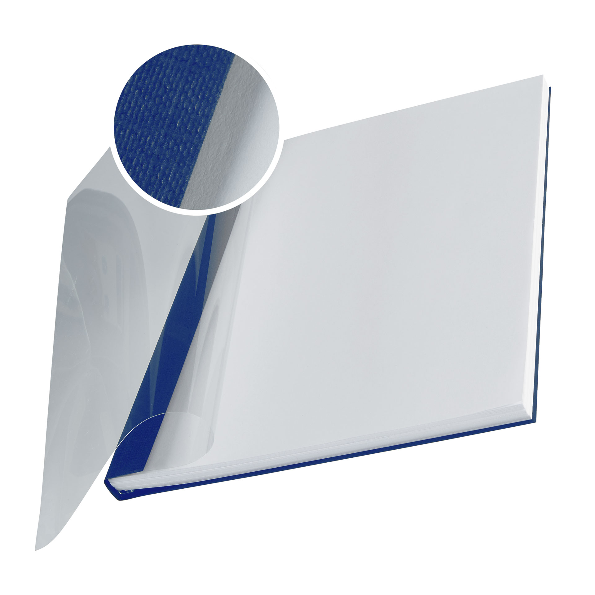LEITZ Buchbindemappen Softcover ImpressBind, mit transparenter Vorderseite aus PET – ideal für eine individuelle Titelgestaltung sowie einem Rückendeckel aus Karton in Leinen-Struktur.