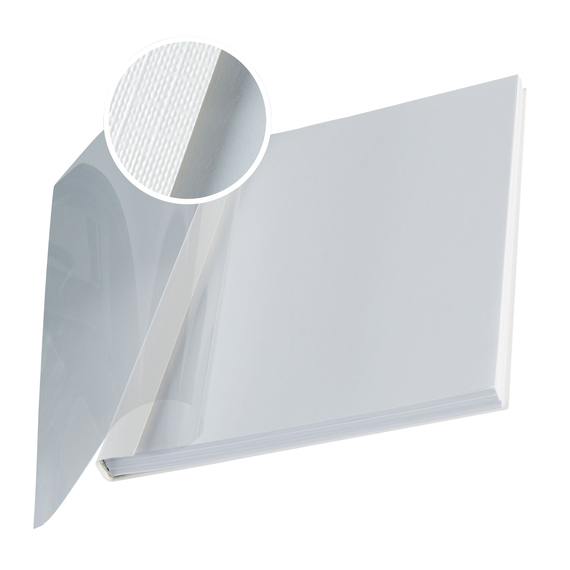 LEITZ Buchbindemappen Softcover ImpressBind, mit transparenter Vorderseite aus PET – ideal für eine individuelle Titelgestaltung sowie einem Rückendeckel aus Karton in Leinen-Struktur.