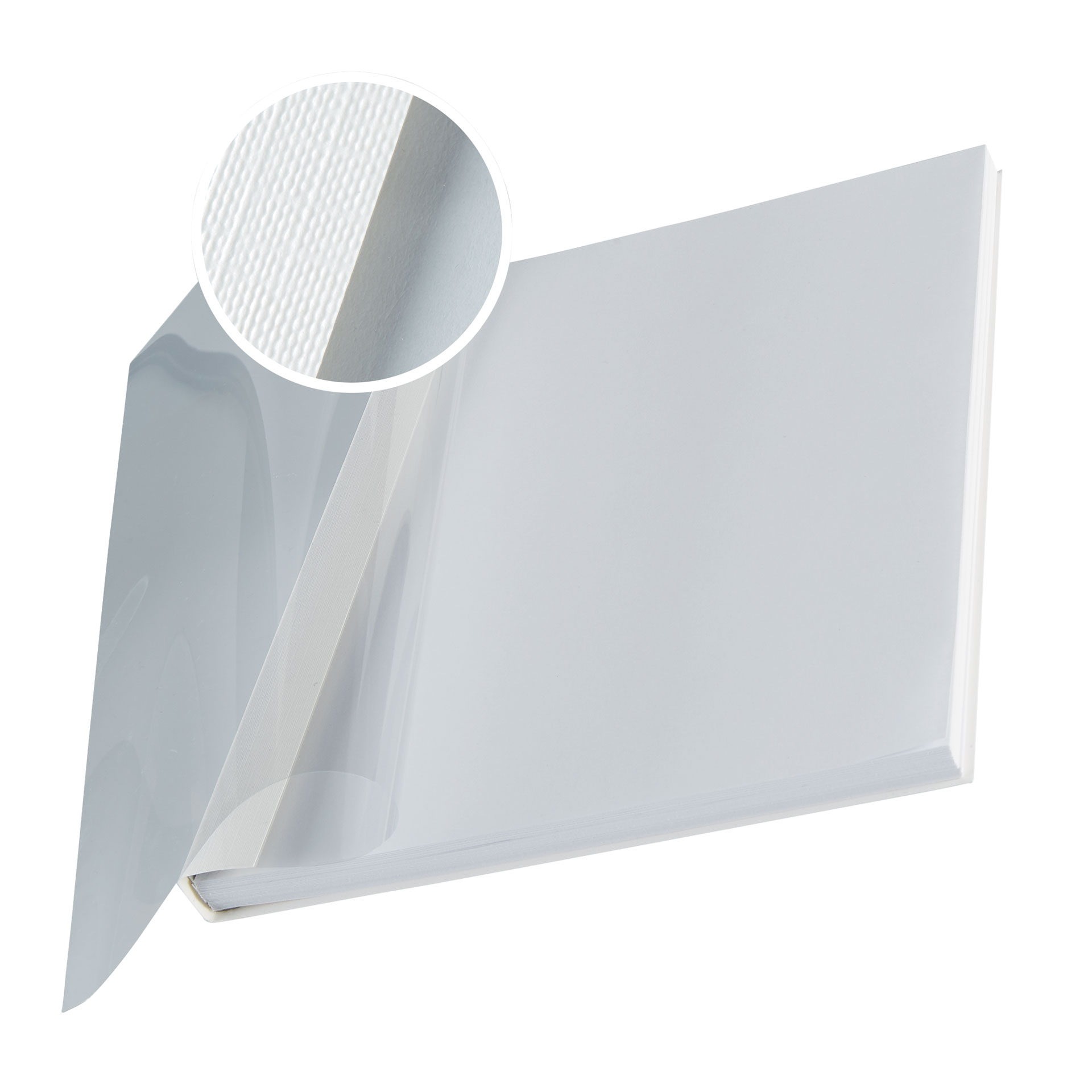 LEITZ Buchbindemappen Softcover ImpressBind, mit transparenter Vorderseite aus PET – ideal für eine individuelle Titelgestaltung sowie einem Rückendeckel aus Karton in Leinen-Struktur.