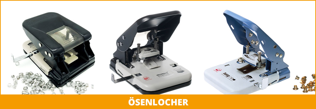 Hochwertiger Ösenlocher bzw. Locher für Ösen sind manuelle und handliche Loch- & Ösgeräte die schnell eine doppelte Ösenbindung stanzen und ösen können. Wir bieten Ösenlocher von namenhaften Herstellern wie SKREBBA, Hang und DUO. Sorgen Sie für eine fälschungssichere und sichere Bindung Ihrer Verträge, Gutachten, Urkunden, Dokumente und mehr! Die passendenÖsen für die Ösenlocher erhalten Sie bei uns natürlich ebenso.