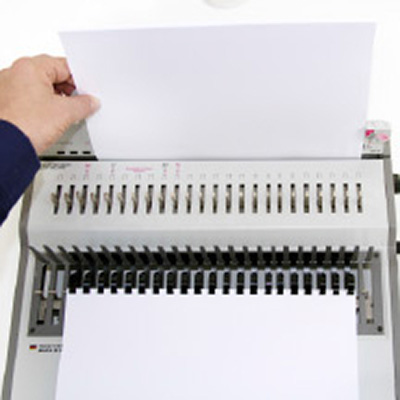 Elektrisches Stanz- und Bindesystem für Plastikbindungen. Für die schnelle und praktische Erstellung von Broschüren und Unterlagen in kleinen bis großen Auflagen.