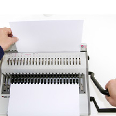 Manuelle Stanz- und Bindemaschine für den normalen Bedarf eines kleinen Büros. Für die schnelle und praktische Erstellung von Broschüren und Unterlagen.