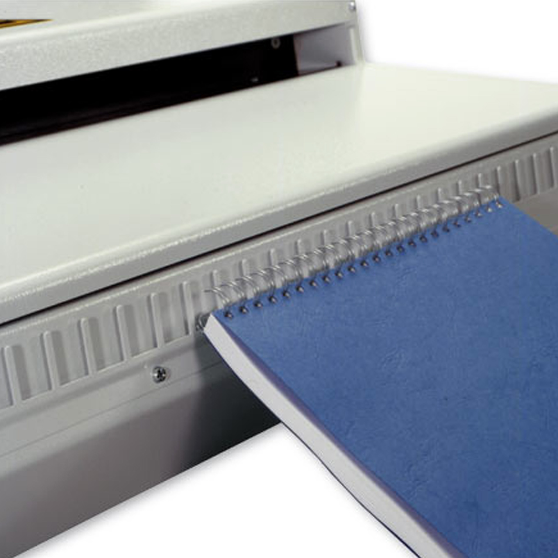 Elektrische Schließmaschinen für RENZ RING WIRE Drahtkammbindung - Drahtkämme binden ohne Aufwand. Eine schnelle und benutzerfreundliche Lösung für kleine, mittlere und zeitkritische Auflagen. Die Maschine gibt es in der Ausführung mit 700 mm Arbeitsbreite.