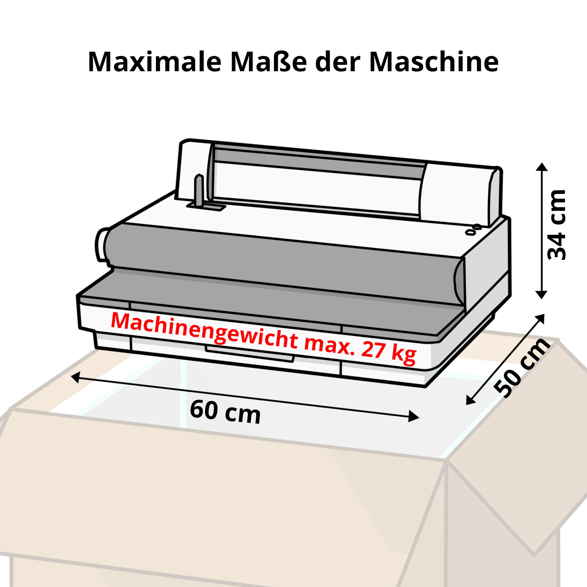Wir senden Ihnen einen passenden Karton mit Styroporplatten, Styroporchips, stabiler Tüte, Klebeband, Servicebegleitschein und eine genaue Anleitung für die sichere Verpackung Ihrer Maschine zu. - Sie verpacken Ihre Maschine
