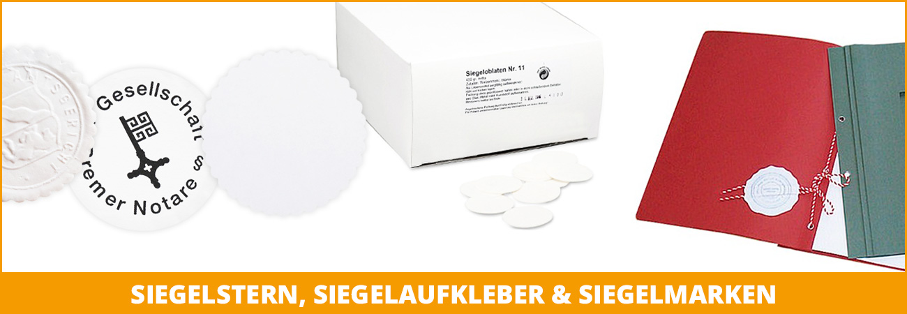 Siegelstern, Siegel Aufkleber & Siegelmarken, sind ein Hilfsmittel der notariellen Beurkundung / für Dienstsiegel. Diese finden häufig bei Notar, Steuerberatung, Kanzlei oder Wirtschaftsprüfung ihre Anwendung und wird anstelle von klassischem Siegel-Wachs zur Anbringung des Prägesiegels an öffentlichen Urkunden verwendet. Eine Siegeloblate ist optimal geeignet für Urkunden, Jahresabschluß- und Bilanzmappenund sonstige Anwendungsbereiche wo Inhalte dokumentenecht gebunden sein müssen.