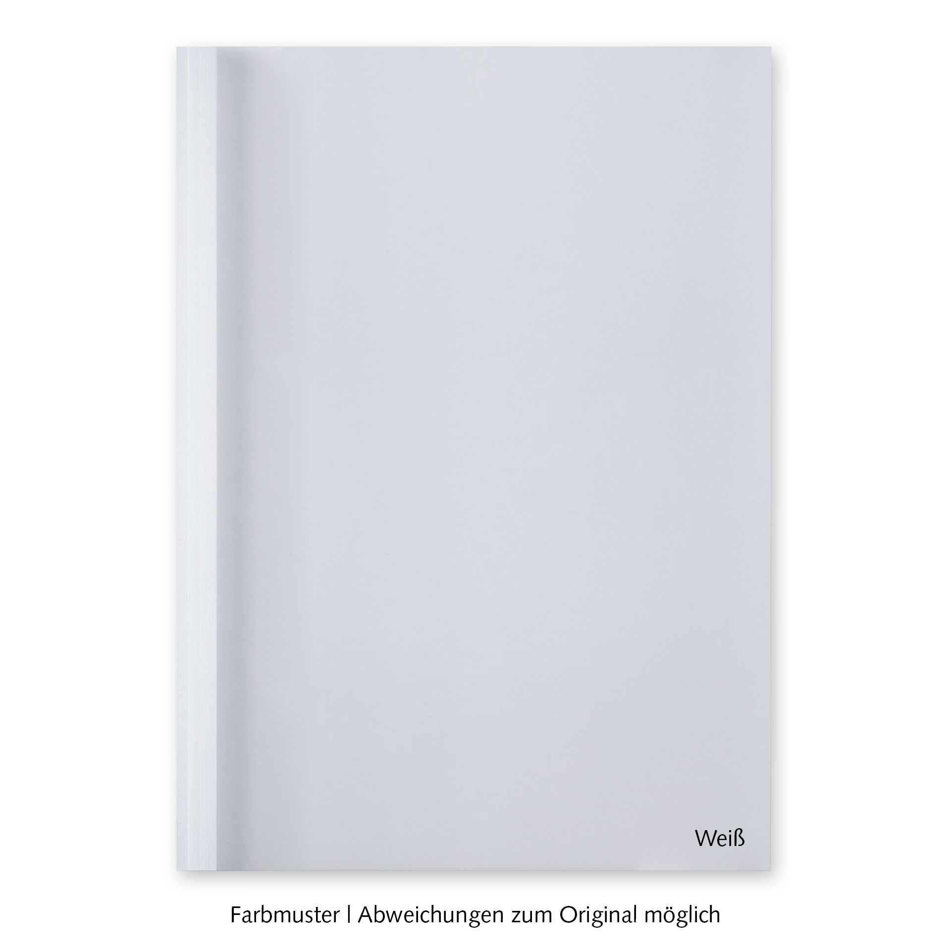 Produktinformationen "Thermobindemappen A4, LEINEN Weiß & Folie (matt transparent satiniert) 1,5 mm bis 15 Blatt"