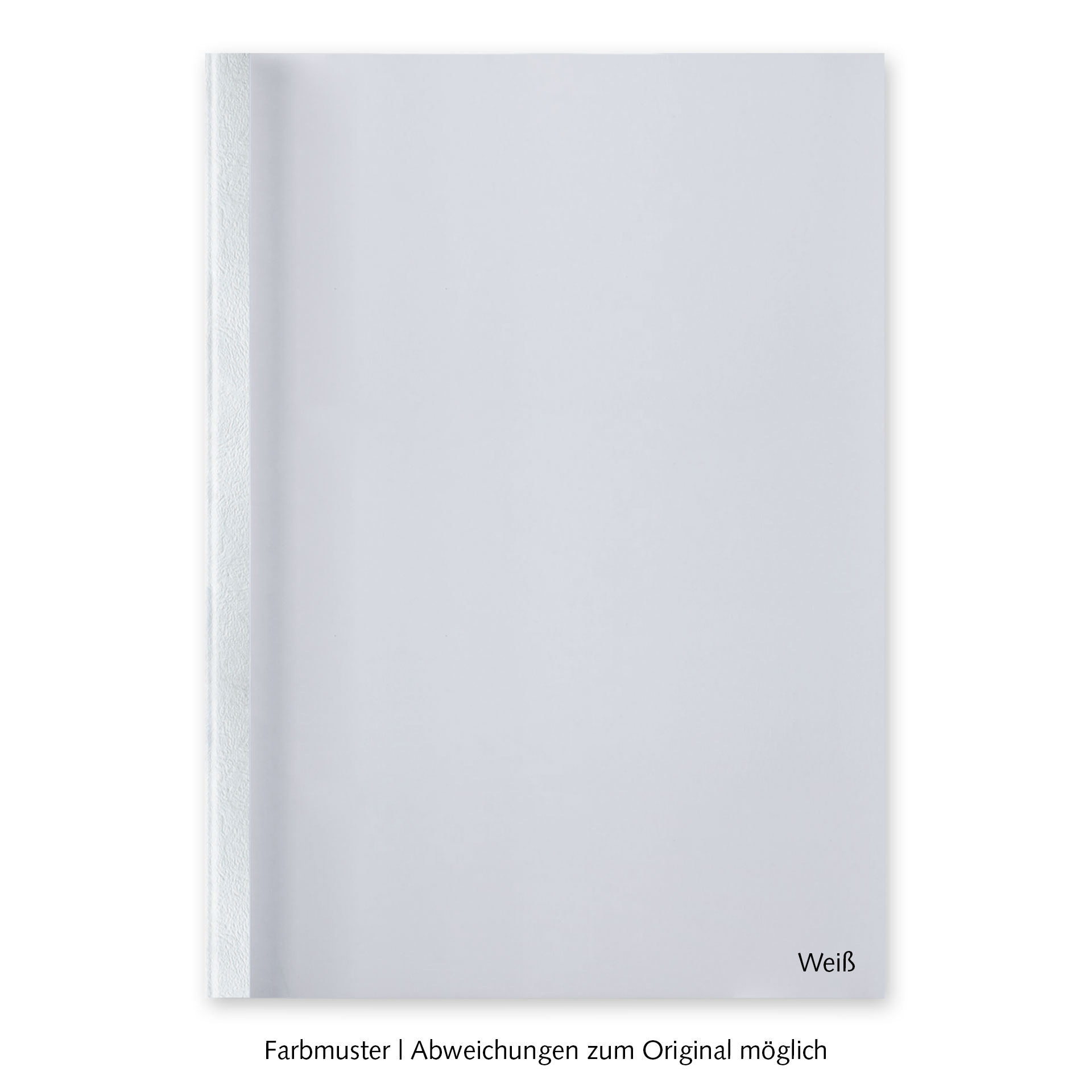 Produktinformationen "Thermobindemappen A4, LEDER Weiß & Folie (matt transparent satiniert) 1,5 mm bis 15 Blatt "